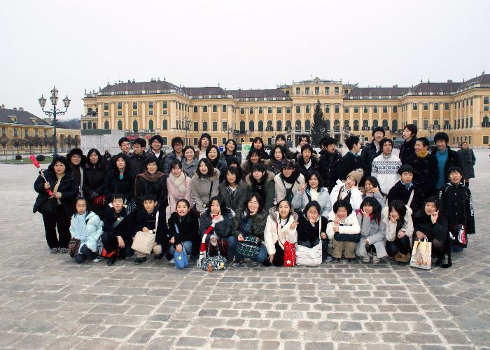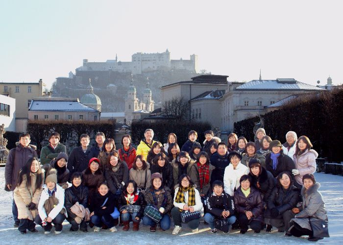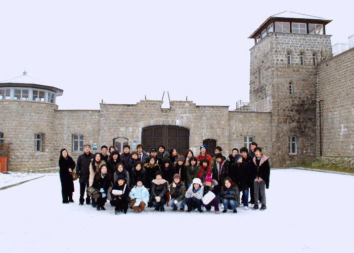 長野県合唱連盟50周年記念「長野県合唱祭 IN ウィーン」を無事終了した一行は、それぞれヨーロッパ各地へ観光旅行に向かった。私は「SK松本ジュニア合唱団」と行動を共にして、モーツアルトの生誕地ザルツブルクそして当時はウィーンと共に音楽の中心にあったリンツへ向かった。途中《マウトハウゼン強制収容所》に寄った。アウシュヴィッツに次ぐ多くのユダヤ系住民の殺戮が繰り返された所。寒ざらしの正門前にて記念撮影。