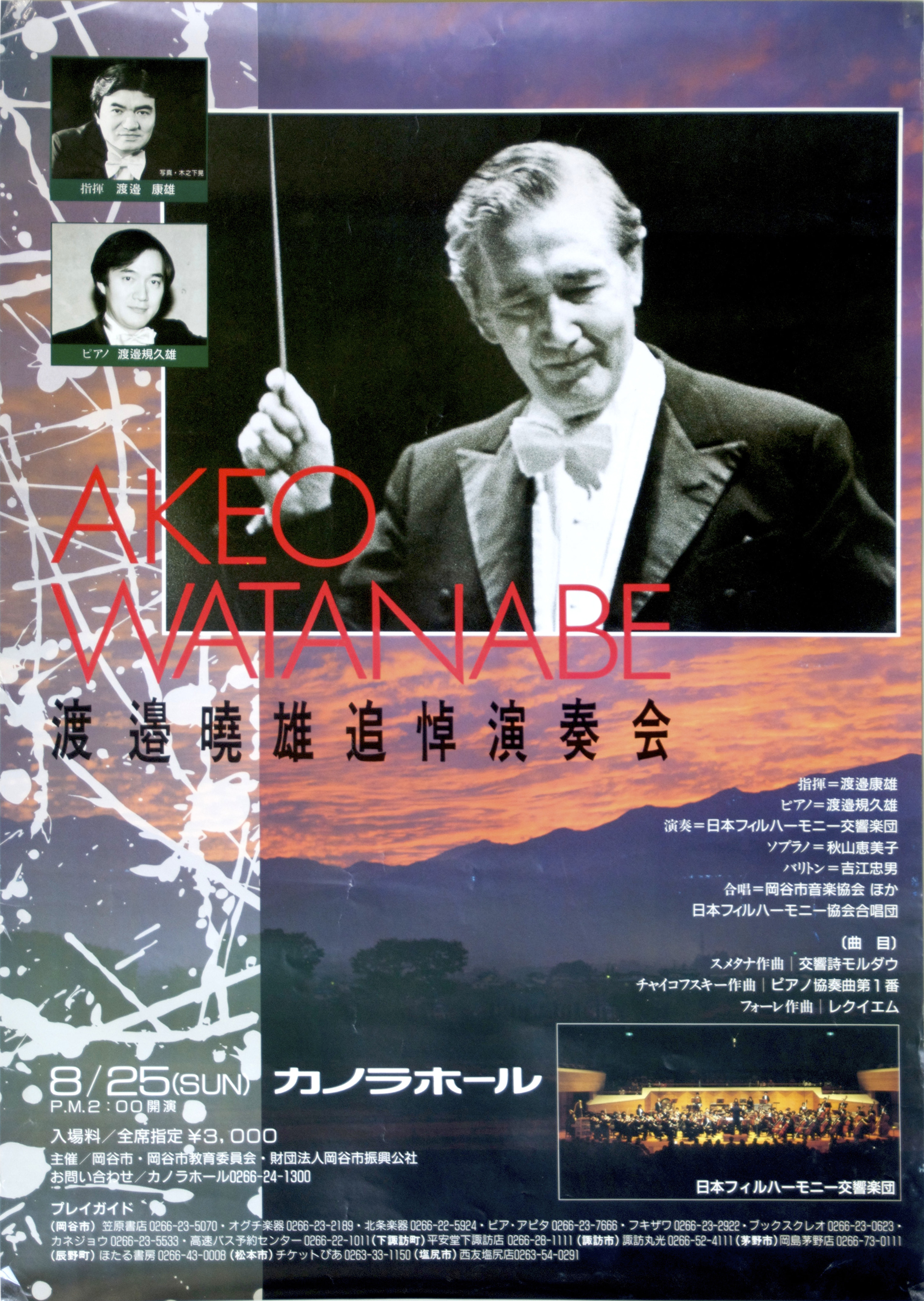 カノラ芸術祭は1994年12月に第一回の演奏会が開かれた。カノラホールが開館した当時はホール中心の組織はなく、岡谷市音楽協会がその立場にあった。私は開館記念「第九」、翌年の一周年記念「第九」のバスパートリーダー、1991年の渡邊暁雄追悼演奏会「フォーレ・レクイエム」では合唱指揮者として、岡谷市音楽協会所属の岡谷合唱団の一員で協力した。