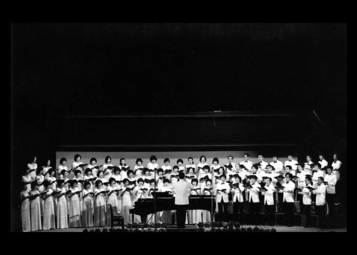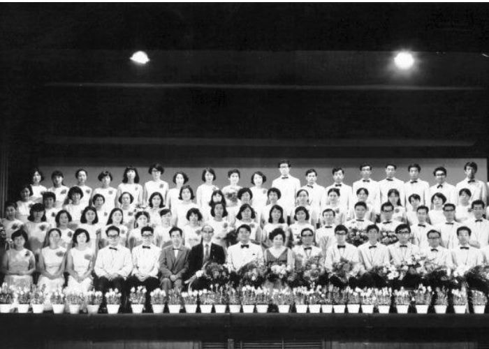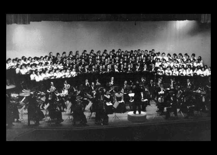 昭和41年は印象深い出来事があった。「3・8事件」なることである。前年のコンクール中部大会は全国の覇者「東海メールクワイヤー」に次いでの2位獲得に歓喜した団員の主力が、結婚などを理由に退団したり、欠席が目立つようになり、指揮者の渡辺先生が愛想をつかし練習場へ現れなかった。必死の団員募集により30名ほどの新人を得、再び先生を迎えて再建第一歩の演奏会が開かれ、テレビでおなじみの坂本博士氏を招いての印象深いものとなった。これを契機に渡辺先生が団員に提示したのがベートーヴェン「第九」と「ブラームス・ドイツレクイエム」であった。地方の一アマチュア合唱団がこの大曲を歌い上げることなど至難の業であった時代、日毎夜ごとにドイツ語の特訓を重ね、昭和42年7月第14回演奏会で2台のピアノによる「第九」を歌い、同年12月ABC交響楽団、指揮:前田幸一郎氏により初めてオーケストラで歌うことが出来た。その後の数年で秋山和慶氏、山田一雄氏のもと「第九」演奏に参加できた。