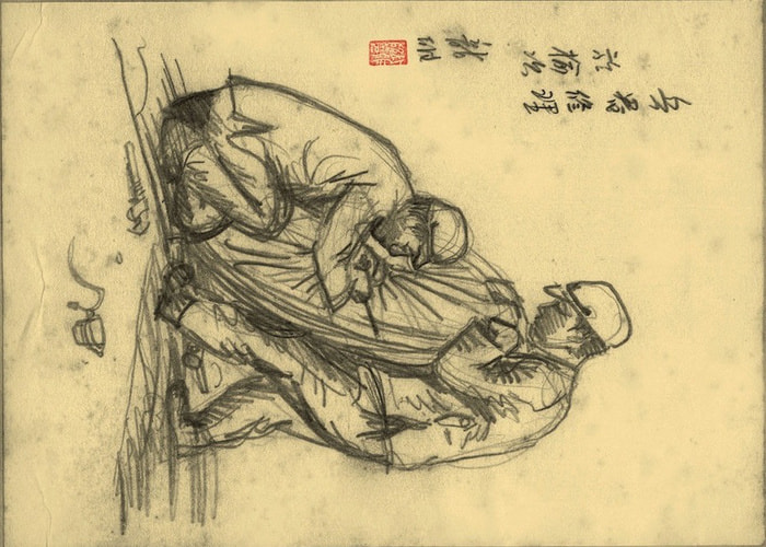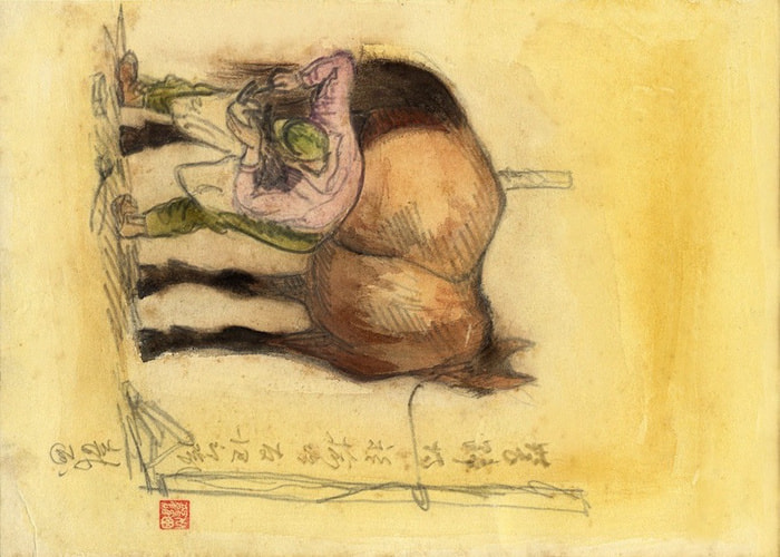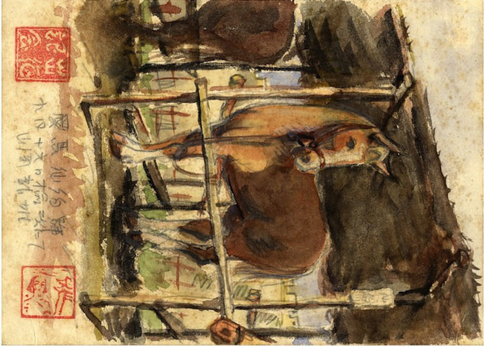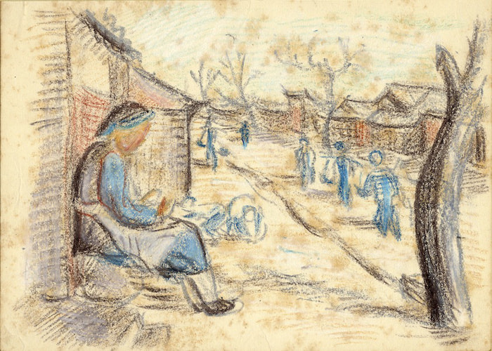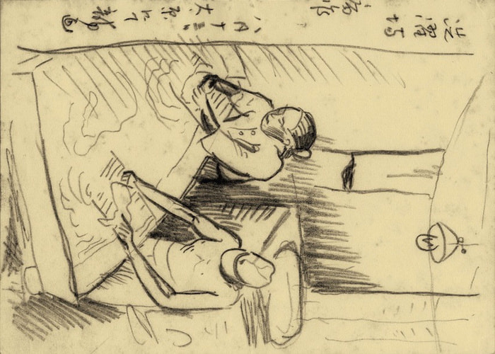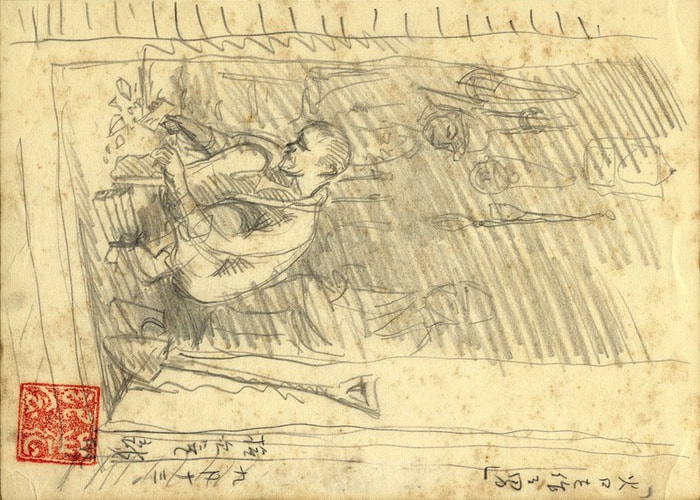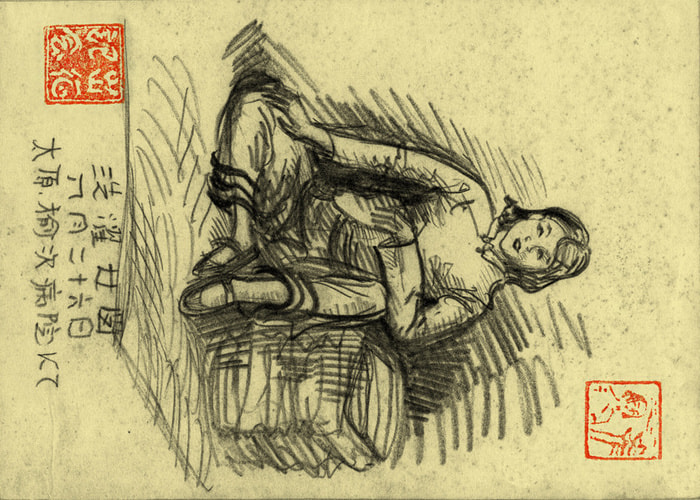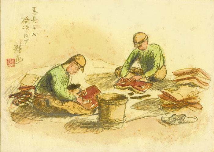 昭和12年(21歳)、初年兵で弘前の第八師団の輜重兵聯隊の馬部隊へ入隊。14年、中国山西省で野戦勤務。日曜日毎にはがきに馬の画を描いた。絵が好きなことが中隊事務室の耳に入り、中隊長や教官の命令で、講話資料の画や図形を描いた。仮想敵国の戦車や戦闘機の特徴など写真や図録を拡大複写した。除隊後、母校の諏訪中学校で教練を指導している時、佐原家に入った。二度目の召集は金沢の55部隊付で、諏訪商業と諏訪農学校の兼務で軍事教官を拝命した。敗戦となり、気力体力共に消耗し病に伏す。