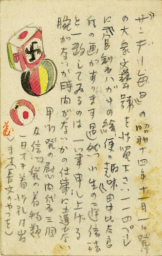 昭和14年から15年にかけて、戦地から送られてきた便りの中から、絵入りのものを掲載します。